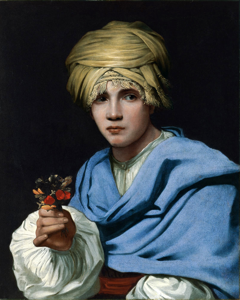 Boy in a turban holding a nosegay